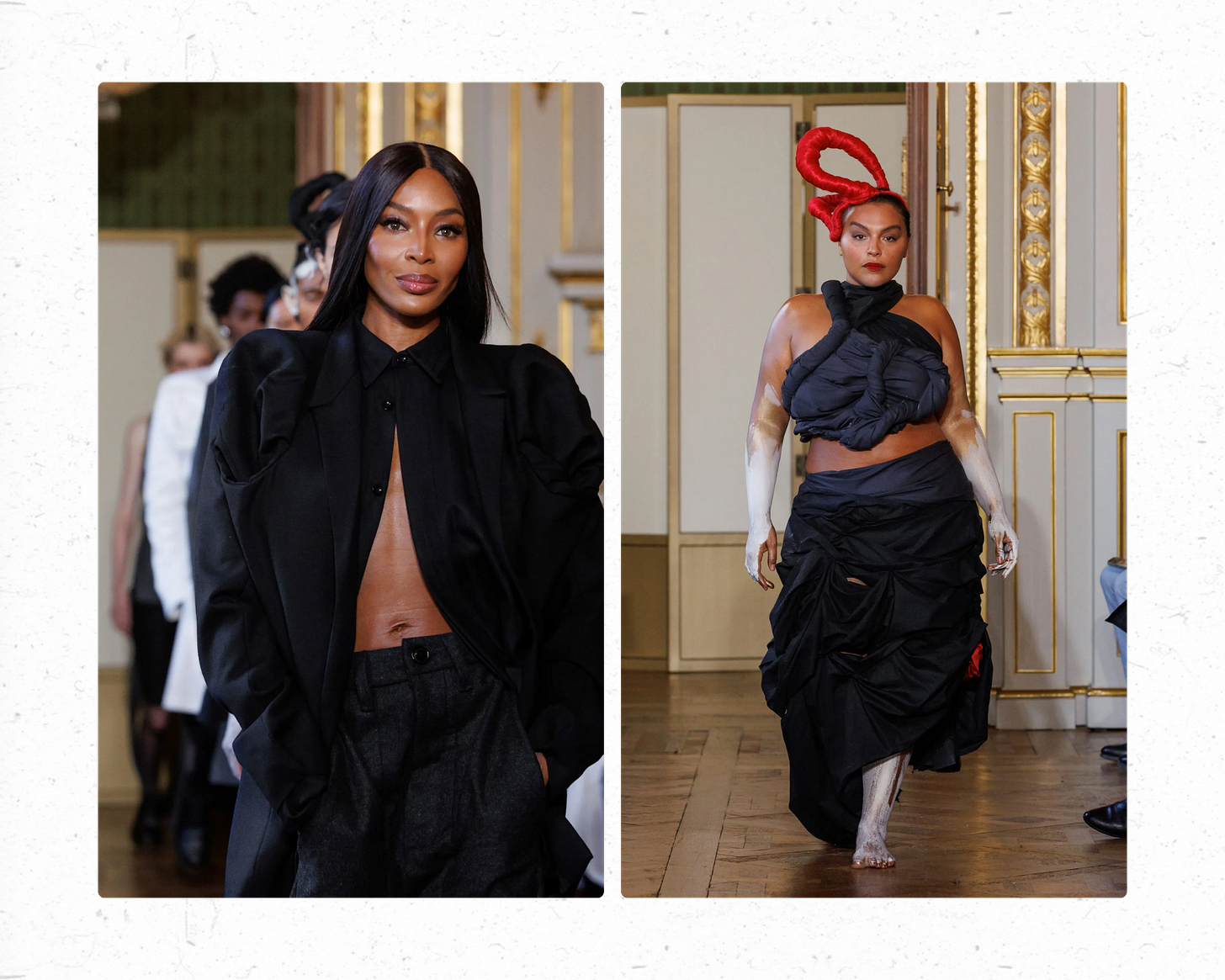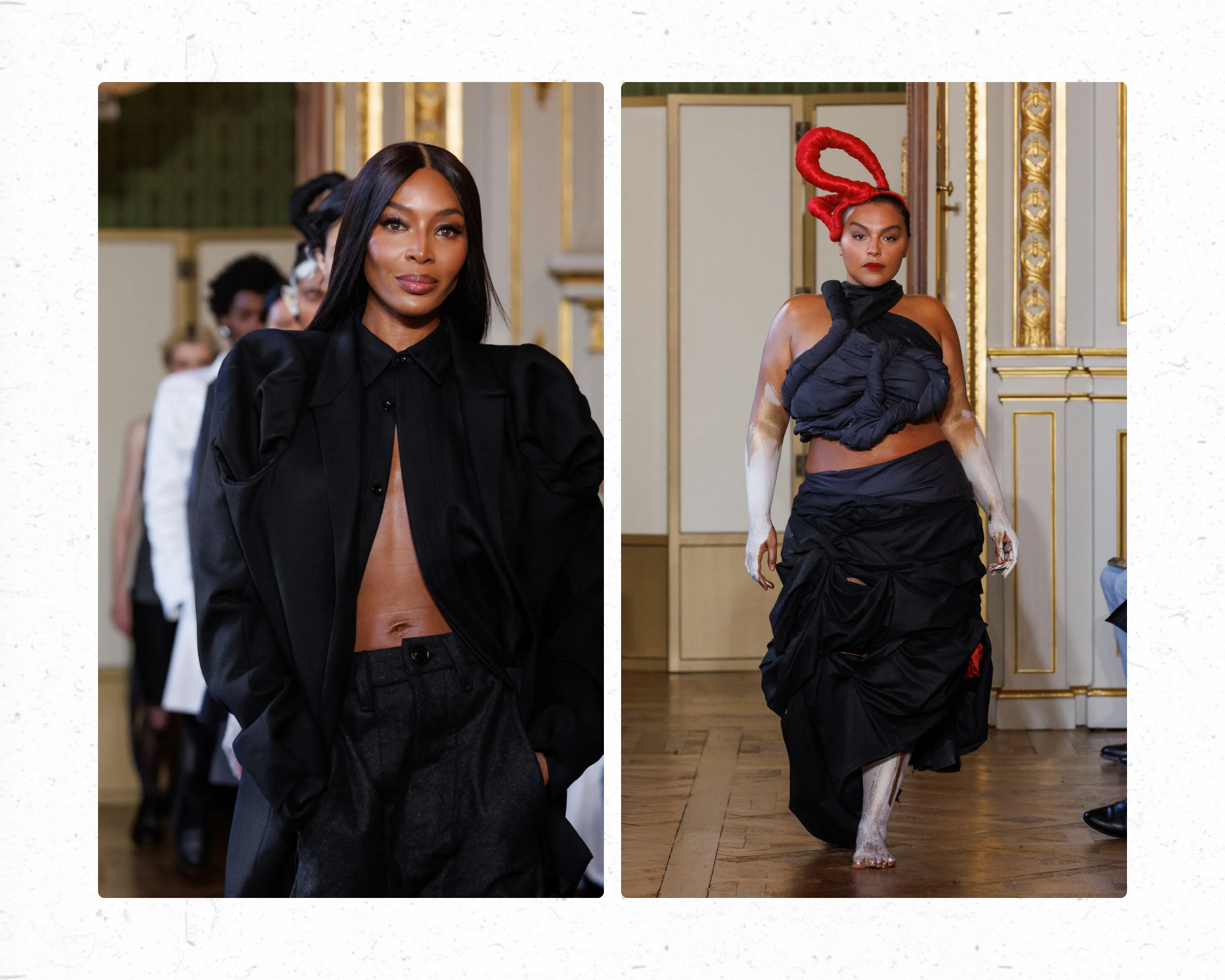 Torisheju Dumi is a British-born designer with Brazilian and Nigerian roots. She graduated with her Masters from Central Saint Martins in London in 2021 and on Tuesday was the only black fashion designer to have debut at Paris Fashion Week. Naomi Campbell opened the show and Paloma Elsesser closed it out, styled by none other than Gabriella Karefa-Johnson.