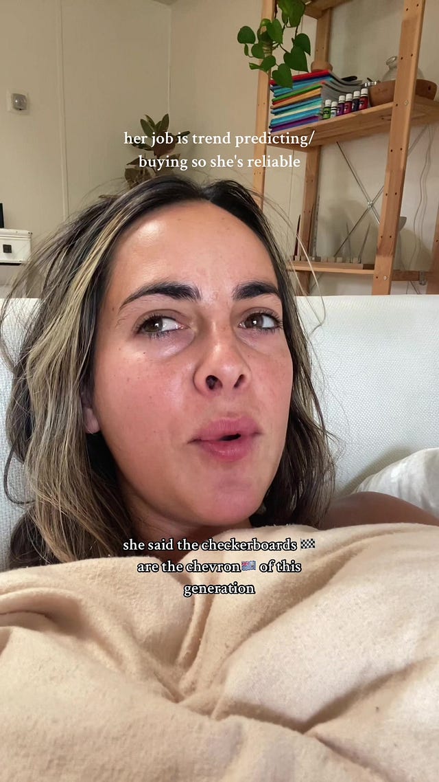 The checkerboard print seems inescapable from rugs to pillows to throws to towels. A now viral TikTok asks if the checkerboard print will become the new chevron that as Millennial we painted the town red in. (FWIW, I don’t think this is true for more classic uses of checkerboard like floors)
